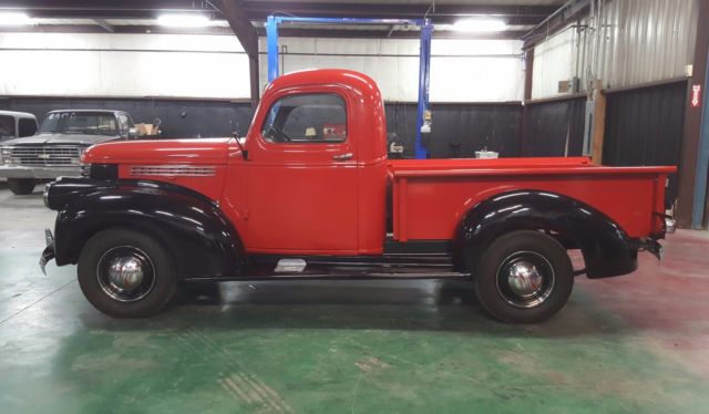 Nice 1946 Chevrolet Pickup. Older restoration, looks great. Very solid, all steel truck. This is a great driver. The 6 cylinder engine runs great, transmission and clutch work good, brakes are fine and steering is tight. All of the lights work as they should and the wipers have been converted to electric instead of the original, unreliable vacuum system. The windows roll up and down smoothly, the crank-out windshield operates like new, the cowl vent goes up and down easily and the doors open and shut nice. All of the glass and weatherstripping is in great condition. The tires are like new. The body is very straight, not full of body filler. The paint is older but still looks very presentable with a nice shine. The trim is in good condition, not perfect but very decent. Overall, a very solid truck that is in amazing condition considering that it`s 72 years old. It`s getting harder and harder to find these type trucks in this condition and especially at this price.Please look at all of the photos, then email or text 940-632-9454 if you`d like more information on this vehicle.PLEASE SPECIFY WHICH VEHICLE YOU ARE INQUIRING ABOUT (I have several).