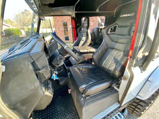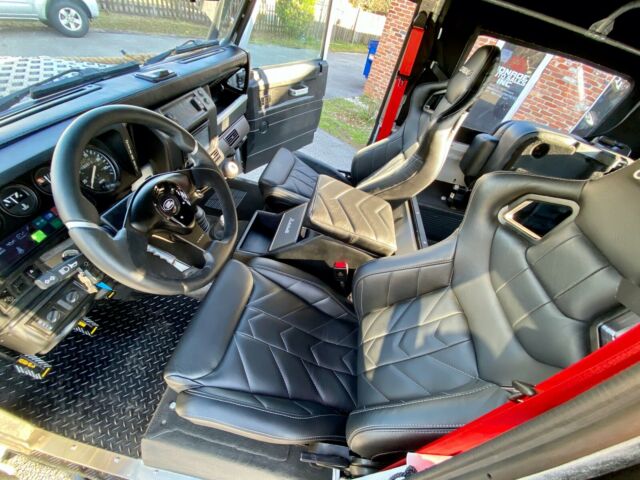 Land Rover Yulong WhiteBlack Leather Corbeau Seats + Matching Folding Rears, stitched WhiteNew Air Conditioning unit (ice cold)Touch Screen Stereo with phone connection4x 500w SpeakersMarshall Amp Bluetooth Speaker Removable Black Canvas RoofFull Roll Cage13,500 lb Front WinchPuma hoodRear swing away spare wheel Touch Screen Stereo North American Spec Rear Step37†Maxxis Trepador TyresRubber Chequer Mat Set Red Seat Belts Momo Steering Wheel + Pedals + GearstickFull LED Light UpgradeHalo headlightsAluminum interior enhancement set
