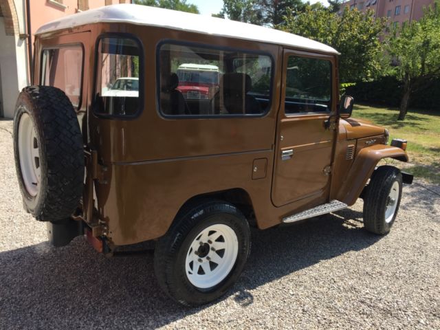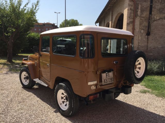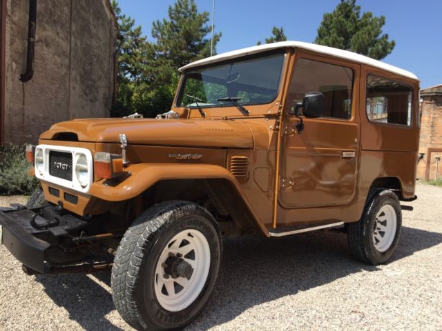 TOYOTA BJ 42 COMPLETELY RESTOREDTHE CAR HAS HAD ONLY 1 PREVIOUS OWNER, WITH ONLY 165.000 KM (MORE OR LESS 105.000 MILES)THE BODY HAS BEEN COMPLETELY REPAINTED IN ORIGINAL COLOUR,CHASSIS IS IN PERFECT CONDITIONS, ABSOLUTELY RUST FREEENGINE IS THE ORIGINAL ONE 3B 3.500 cc DIESEL, AND IS PERFECTLY RUNNINGTHE CAR IS COMING FROM THE CENTER OF ITALY (THE SUN SHINE STATE) AND SO NO SALT AND SNOWINTERIOR ARE IN PERFECT SHAPE AND SEATS ARE BEEN RESTORED, IF YOU NEED I HAVE ALSO THE REAR ONESHIPPING COST TO EAST COST IS ABOUT 2.500 $VIN. BJ4200900482DO NOT ESITATE TO CONTACT ME FOR ANY QUESTIONBUT PLEASE DO NOT BID IF YOU ARE NOT SUREMARCO 0039 335 7584646EMAIL: