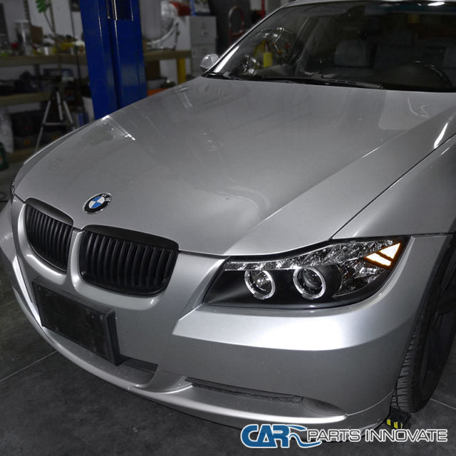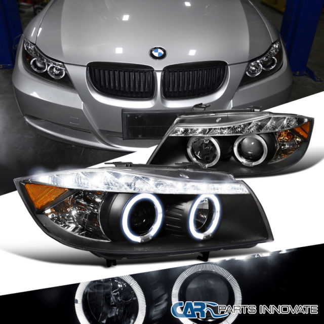the light/ item color tone of the photo may be slightly different from the actual item. 2006-2008 BMW E90 3-Series 325i 330i 4Dr Black Dual Halo Projector LED Headlight