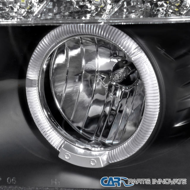 - Comes with 1 pair of black housing clear lens dual halo projector head lights with bright white LED DRL (Daytime Running Lights).