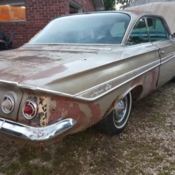 1961 Impala Bubble Top, lack/Black. Super nice car in all respects. Rebuilt 348 Tripower with less than 2K since completed, sky cam and lifters, new pistons and rods, ll new bearings through out, arbs rebuilt professionaly. Great sounds thru smitty's mufflers. autometer tach and gauges, tock speedo, ustom auto sound stereo system (HIDDEN AUDIO), intage air gen4 heat and cooling and custom aluminum radiator with dual electric fans. runs cool in AZ heat. Black vinyl and clothe upholstery, omplete redo, arpet, eadliner, oor panels and seats . All new glass except rear window New two stage paint. Four wheel disc brakes with dual diaphragm booster, adillac rear calipers with parking brake, ronts have drilled and slotted rotors. New clutch and trow out bearing. 3:36 posi rear end. 17x8 American salt flat wheels, ully polished with new 245x17 radials