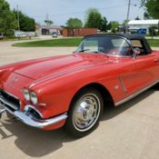 Roman Red/Red interior327/300 hp (original engine was replaced years ago) 174 block now4 speed transmission w/ Hurst shifterWonderbar radioAmerican Racing Mag. wheels/black wall radial tiresBoth hard and soft tops.Excellent looking street Machine! Old School LOOK! And not your NCRS type Corvette. Solid Frame. Very clean interior. The lacquer paint has been on the car for 15+ years and still looks great. A Great drive with an awesome sound. This is a top notch driver Corvette at a Great price.