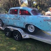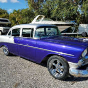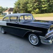 If you're looking for a modified 1956 Chevy Bel-Air, ou may want to keep looking. There are a lot of them out there. But....if original is what you want, his may be the one for you. This rust-free Bel-Air has been kept in its stock condition. It has its original rebuilt 265 power-pack motor and automatic powerglide transmission and correct interior and paint scheme. It's had one repaint in its original colors of Sierra Gold and Adobe Beige and is far above driver quality and will show well at your local car shows. It is in excellent condition with no scratches, ings or dents. This is not a low end Bel-Air. Rebuilt 265 power-pack engine, ewer radial wide whitewall BFGoodrich tires, ear fender skirts, ront fender gravel guards, oor handle guards, ront and rear bumper guards, indow rain deflectors, M/FM radio with cassette and tissue dispenser.This car is beautiful and runs and drives as good as it looks. This car belongs to a friend and is being stored at my house and must be sold. Please direct all questions to Wayne at 406-821-0300. $1,000 deposit is due within 3 days of winning bid, alance due within 10 days. Inspections are welcome.