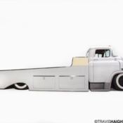 BODYWORK• Extensive metal shaping and fabrication.• Top chopped 4". Drip moldings extended. • Pull handles are relocated 3", ustom engraved, nd chromed.• Body molded and shaved of door handles, rim, nd badges. • Headlights frenched with 1954 Mercury headlights.• Fenders are shaved and smoothed.• Custom 1/2 ton chrome truck grill.• Original mirrors shaved and re-located. • Line-X on entire inner cab, loors, nd inner body panels (excellent sound and heat protection).• Garnish Moldings (chopped and body worked).• Body mounted to 1999 Chevrolet dually frame. Fame consists of 1950 top frame grafted to '99 frame.• Dynamat heat and sound deadener used throughout over top of Line-X.• Exceptional primer and paint work. House of Kolor paint products used.• Quality chrome plating. • Inner fenders undercoated and protected from elements.• Rare front bumper from 1-ton model.• All glass professionally cut for custom chopped top. • Frame all painted with POR rust preventive paint and Powder coated.• Powder coating used on many inner body panels and 30% of frame components. • Extensively body-worked hood. Smoothed off and sculpted.• Running boards (stomp pads) are covered in cream colored line-X. Very durable and usable.• Turn signals shaved and re-located to front running lights. DASH• Gauges Classic Instruments (custom gauges with gasmask logo). • Electrical is all Painless product. Quality made in the USA.• Stainless Glove box and chrome dash components.• A/C is Vintage Air (kit for 1950 truck) with heater.• Full Kicker stereo system 8- speaker 4- amplifiers.• High end SONY head unit. • Wipers are electric replacing the original vacuum systemGLASS• Window channels chopped and custom made for top chop..• Felt and rubber all by Metro Molded parts. Made in the USA.SUSPENSION• Full airbag system. 8 Continental airbags. Truck sits on the ground and rides like a dream.• Custom A-Arms, link installation.• Rims Powder coated wet black.• Fuel Lines are stainless.• New Brake System / Lines.• Frame shortened 12" and boxed in for strength.CHASSIS• 1999 Chevrolet dually subframe with PAC Racing (suspension components). • Air suspension components are Viair (air tanks, ompressors) accuair manifold. • Airbags Continental (tires, ir springs). • Mufflers Gibson (mufflers, eaders). Dual exhaust. • Front disk Brakes. Fully rebuilt.• 4" Wide whitewall tires by Coker Tire / 17" steel wheels / Custom polished aluminum hub covers.• Alternator is stock.• Driveline is stock but shortened 12".• Rear End is stock rebuilt 1999 Chevrolet dually.• Radiator is custom 4-core radiator from US Radiator. Made in L.A.• Custom horn.• Master Power Brakes (master cylinder).• Massive 30 gallon gas tank.BED•Bed Wood and Parts brand. Custom made Hickory. Laser etched with Grundy logo. •Full custom rear suspension and bed frame. Frame drops down over wheels. •Bed is fully tilt / airbag system capable of hauling a small to mid-size car on flatbed.•Bed Wheel well covers are hand made.ENGINE• Engine 6.0 LQ9 out of 2006 Escalade.• Transmission 2005 Chevy HD 4L80E.• Smoothed firewall with recessed master cylinder.• Gennie Shifter.• Steering Column is stock but shortened and adapted to fit late model frame.• High performance Kinetic batteries. Three total.• MSD (fuel injectors etc...).UPHOLSTERY• Weather Stripping Metro Supersoft (kits for 1950 chevy truck). • Seat Frame Structure powder coated cream.• Leather work hand tooled Chico's leather work. Based on Max Grundy artwork.• Leather seat and door panels.• Dynamat Xtreme (Insulation). • Misc. upholstery by Benecke-Kaliko (Vinyl upholstery). • Seatbelt's USA made• Lloyd Mats custom floor matsMISCELLANEOUS• Appleton style spotlights.• Rear taillights are restored items from 1950's bus.• Emergency Brake is chromed and modified original.• Truck all built using Miller welding products.