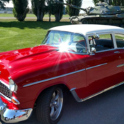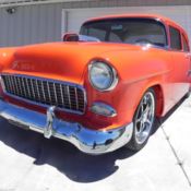 This is my 1955 chevy 210 pro street, it has a 355 small block with an Eagle forged crank, Eagle rods, speed pro pistons, Dart pro 1 aluminum heads ported and polished, stainless steel valve springs, 7/16 screw in studs with guide plates, Crower roller rockers with stud girdles, it has a 671 Littlefield blower, teflon stripped, two Barry Grant 750 race demon carbs, 250 HP nitrous oxide system, MSD 6AL box, Mallory unilite distributor, Be Cool aluminum radiator with Black magic electric fan, Transmission is a Richmond 5 speed with blow proof bell housing and Hurst shifter, line lock, rear end is a chevy 12 bolt with an Auburn race center section, 456 gears, Strange axles, 15 gallon fuel cell, Weld wheels with Mickey Thompson tires, front 15x5 with 27 7.50-15 tires, rear 15x15 with 31 18.5-15 tires, the dash doesn't work, it has Autometer gauges, boost, fuel level, temp, oil pressure, Autogage tach, it has some dings and dents, some bubbles on bottom and cracks by rear wheel wells, it runs well, very fast, I accept cash or bank cashiers check, buyer is responsible for shipping and cost, reserve is set much lower than all other cars on here, thanks for looking.