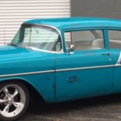 Please read entire ad.Up for auction. A beautiful 1956 chevy 150 Model 2 dr post. Ive owned the car for 7 years. I purchased this car from a collector as a super clean original "zero" rust car with only one repaint in its original Black color with White painted roof. It is all original sheet metal, floors, chassis. The only thing not original to the car is the fiberglass teardrop hood This is a very nice fitting hood with hinges. I sold the original hood and front bumper from the car. They are no longer available. The paint job is very nice and shows well, with a few minor scuffs and light scratches. When I purchased the car it had the original straight 6 with a powerglide transmission. This was a perfect base for the car I was looking to build. I then went forward building it into what you are viewing now. The engine I installed is a big block 468 with 4 bolt mains and a steel crank. It has a full MSD ignition-distributor, coil, and 6al ignition box. This is backed by a richmond 5 speed transmission that I purchased new and also installed a dual disc centerforce clutch. It also has a brand new 12 bolt Moser reared with 355 gears with old school M&H powder coated ladder bars. I then went on and installed a complete non-power front disk brake set up with a hurst roll control line lock and new brake lines front to rear. New frontend, bushings, balljoints etc…I spent countless hours cleaning the bottom of the floors from the rear of the front doors to the rear bumper when I installed the rear end. I took it down to bare metal then applied etching primer and epoxy satin black paint, at this time I installed a new fuel tank with a sump installed, Mallory electric fuel pump with new 1/2" steel braided fuel line. The battery is mounted in the trunk with an on /off cutout fabricated into the right side tail light reflector done cleanly so its unnoticeable. The inside of trunk still needs to be detailed. For the most part the interior is all original except for the bench seat being notched for the 5 speed installed a carpet. It came from the factory with rubber mat. new headliner installed. I fully insulated the interior with dynomat at this time. I installed 1970 chevelle seat belts in the front. I also installed an after market radio that is neatly in the glove box. I had professionally chrome plated the glove box along with the clutch pedals, and the dash is finished off with a 55 bel air bow tie insert, real Stewart Warner oil, and water pressure gauges from back in the day, and a new super sun tach…Perfect!