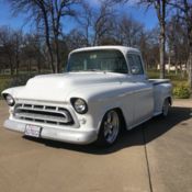 1957, 57 Chevy, Chevrolet Truck. Frame off restored custom pickup, recently finished. Has a newly rebuilt chevy 350 that runs great. Transmission is a 350 automatic. Has a camaro front clip that greatly improved the ride and handling over stock. Has power steering, power brakes, tilt steering wheel out of s-10, heater, custom front bumper, one piece window conversion, roll pan, smoothed dash, new gas tank and sending unit under bed, new 18 inch wheels and tires, new light switch, new upholstery, new carpet, new door panels, new armrests, new glove box, new door handles, new side mirrors, new front turn lights, new tail lights, new bed wood, new front shocks, new door seals and new windshield wipers. Brake lights, turn signals, head lights, dome light, dash lights, heater, windshield wipers, and horn all work. Speedometer does not work and will need a longer speedometer cable. Over all this is a very nice truck and a joy to drive. Only selling because I want to start a business and could use the extra money. Feel free to come see in person. This is a no reserve auction so highest bidder gets it, thanks and good luck!