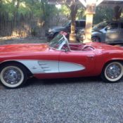 1959 Corvette Red Interior with Red exterior.With bothhardtop and softop. Power windows rare option only 587 produced. Engine is a 327 with 2x4 barrel carb's. 4 speed.Runs great. All gauges work. Tach needs a cable. All lights work, car was just inspected. Nice driver quality paint.Nice chrome on front and rear bumpers. Stainless is real nice. All emblemsare new. Great looking interior with nice door panel arm rest and metals. Car has a low stance. Runs and drive real nice.I have original Wonderbar radio that goes with car. Nice frame.More pictures are available. Thanks for looking