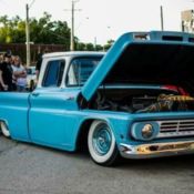 Your bidding on a super clean bagged c10 it has a 350 crate motor w roughly 15,000 miles, center bolt valve cover. 350 turbo trans, lokar shifter, I did it polished tilt column w replica billet impala steering wheel, satin blue paint w tons of stripes, everything that is white including drive shaft is tri-stage white with blue pearl and cleared, roof, drive shaft, door panels, grill. Manual valves, one for rear and front has a switch for each side. Polished intake, water pump, steel braded heater hoses, stainless shroud w brass top radiator, chrome pulleys alternator and bracket. Engine driven flex fan, no electric fans. Very rarely goes over 180. 650 edelbrock, electric fuel pump, trans cooler, 4 link, 2 viar 480s 5 gallon tank, all drums brakes in rear are BRAND NEW drums and shoes, power brakes with new master cylinde, new carpet, just re stuffed bench seat last week. 15 inch 6 lug steels heavy blue flake buried in clear, firestone 4 1/2 inch biasply wide whites, new front and rear bumpers, new inner and outer door skins,inner outer rockers, cab corners, both front fenders the bottoms have been replaced, factory smoked windows. If you have any questions feel free to ask.