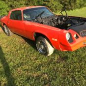 1978 Project Camaro car. Would be great to restore completely or make for a good drag car. It runs, but its been awhile since its been started. Will need a passanger side door. Have a quarter patch panel to go with it. Noticed keys are missing as well. Could be inside somewhere. Due to all the interior apart and all on the inside I dont see them. I do have a brand new trunk/door/ingnition lock in the box you'd just have to install it. Hinges are sprung, have parts for that as well. You can notice a tree branch fell on hood, which I believe it could be popped out. Front passenger floor pan has a hole in it that I know of. Mileage unkown. Title can be put in your name as the original buyer without bill of sale. SOLD AS IS!! Buyer is responsible for shipping or picking up of the vehicle. Will be released after payment is received in full! Buyer has 3 days to pay. Cashiers check accepted only or cash in person. Thanks for looking. Have any questions contact me. Amanda.