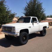1985 Chevrolet C-10 Silverado Pick up with full size long bed. This truck starts and runs but the transmission is bad so it will not drive. If you buy this truck you must be prepared to have it towed.The truck itself is in good condition. There is some rust around the bottom of the doors, inside the wheel well, the outer bottom edges on the length of the body and the rear bumper has some crome peeled off with superficial rust. There is a dent in the right front side fender. The Engine runs well. It has a newer carburetor head gaskets and a newer muffler. The engine has a slow oil leak which is typical of a car this age. This truck would make a great restoration project