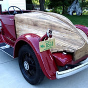 The wheels were replaced with one-off polished aluminum wheels designed to look similar to 1956 BelAir hubcaps. The size is 15x7 with 4" backspacing to accommodate the Big GM Caliper front disc brakes with 11' rotors. The wheels were manufactured by Mike Curtis and Larry Dove at EVOD Industries in Escondido, CA. These beautiful wheels are wrapped in Diamondback 205/75R15 DBII tires with 2.25" whitewalls.