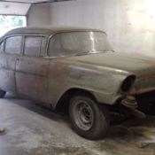 THIS 1956 CHEVROLET 4 DOOR COMES FROM A LONG TIME STORAGE IN WESTERN NORTH DAKOTA.IT HAS THE ORIGINAL V-8 MOTOR;IT HAS THE AUTOMATIC TRANNY;THIS IS A VERY GOOD CAR TO RESTORE;THE FLOORS ARE ALL HARD; ONLY SURFACE RUST;THERE IS CRACKED GLASS;I COULD NOT TURN THE MOTOR BY HAN, SO IT COULD BE STUCK;THIS CAR WILL NEED TOTAL RESTORATION.CHECK OUT THE PIX'S;I AM SELLING AS IS WITH NO WARRANTY;I CAN HELP ARRANGE REASONABLE SHIPPING;JEFF 218-464-2821On May-10-18 at 16:14:46 PDT, seller added the following information:I have added engine pix