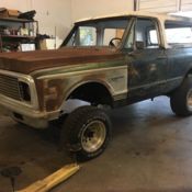 1971 Chevy K-5 Blazer with a new crate 350 and Sm456 4 speed with a 205 transfer case. Motor and transmission are in very good working condition. Front and rear axles are 307 gears with a posi. This is a rust Free California truck. Paint is about 5 years old and in nice driver condition. Truck has new brakes. alternator. voltage regulator. 4 core aluminum radiator. hoses. weather stripping. stereo. locking hubs. fuel sending unit. flow masters and interior. Tub of blazer was sprayed with bed liner. I put a nice custom cage inside of this Blazer. This is a nice clean California rig and looks excellent. Any questions or more pictures please call 925 321 1895. This is a clean title truck. All ac parts are new it will need a few under dash hoses as i didn't want to put aftermarket ones in.
