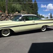 This is a nice 4 door 1959 Impala. all the glass is in good condition. Doors open and shut nice. Has some minimal rust. floors are fairly solid except for the drivers side floor which has a small hole. The trunk floor is solid with the exception of the spare tire opening. Car has no motor or trans. missing the rear valances but there are some others along with lots of trim inside the trunk. headlight bezels. rear lights etc. Interior is complete but the front seat is missing the tracks. Would be a very cool patina build or perfect for parts. Will need to be towed. located in Salt Lake City UTAH 84120If you have any questions feel free to ask. Thanks for looking.