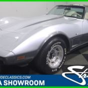 This 1978 Chevrolet Corvette 25th Anniversary model helped GM celebrate in a big way. With distinctive two-tone paint, a beautiful Oyster leather interior, and a modestly upgraded 350 under the hood, it's a great entry-level 'Vette that will get you into all the big events and put a smile on your face every time you crack the throttle. 1978 was the first year of the fastback styling, and combined with the two-tone paint, the results are a homerun. Wearing an older repaint that still looks decent, this Anniversary 'Vette is perhaps the most handsome built that year. More understated than the pace cars, but emphasizing the bulging fenders, there was no doubt that this was a high performance machine. A lifetime in the warm southern US means that it hasn't had to contend with the elements, and this is a car gets attention simply because of what it is. There's some cosmetic damage on the passenger's side, and while there are the usual signs of age in other spot as well, it doesn't have any immediate needs and you can enjoy it for many years without worries. The price is certainly right and if you don't mind a car that looks like it's got stories to tell, this is a great place to start your Corvette adventure. Oyster leather was an unusual choice with the two-tone bodywork, and most enthusiasts prefer it to the much more common silver leather that came on most Anniversary models, as well as the pace car. Wearing bright, clean seat covers, the buckets are supportive and comfortable, and the contrast between the off-white upholstery and silver paint is extremely appealing. The door panels, carpets, and dash pad are also in excellent shape with few signs of use, even on the light-colored carpets. Loaded with options including A/C (needs to be serviced), power windows, and a tilt/telescope column, it's as comfortable as any car you can buy today but infinitely more stylish. The leather-wrapped steering wheel feels great in your hands, and someone has added a woodgrain applique kit to the center console, warming up the interior in a big way. An upgraded AM/FM/cassette head unit replaces the original, which probably included an 8-track, and has been neatly installed with no hacking or cutting. In back, the cargo bay is protected by tinted hatch glass and a retracting cargo cover, and you'll note a pair of speakers discreetly tucked into the corners. The original, matching-numbers 350 cubic inch V8 is still under the hood, although it has seen its share of upgrades. Those upgrades include a polished Edelbrock intake manifold, a matching Edelbrock 4-barrel carburetor, and plenty of chrome dress-up. It's quite clean, with conscientious maintenance and no radical mods to ensure reliability. Underneath, there's a TH350 3-speed automatic transmission, plus a set of 3.08 gears in the original rear end that make it a comfortable highway cruiser. The exhaust system features a high-flow catalytic converter in place of the original, which might free up some horsepower, but it is otherwise quite stock. The undercarriage is very clean even though it's unrestored, suggesting a car that has not seen much in the way of inclement weather. The original machined aluminum wheels wear staggered 255/60/15 front and 275/60/15 rear performance radials that really stuff the fenders. Distinctive Corvettes don't have to be expensive and this '78 Anniversary model is a great way to get into the Corvette hobby for not a lot of money. Call today!