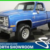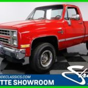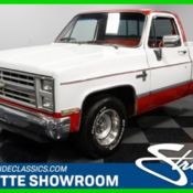 With trucks becoming more car-like every day, there's starting to be a real call for the classic real-deal pickups like this 1986 Chevrolet K-10 Silverado. This 4x4 has the great no-nonsense looks, and the investments made in this one went to enhance the robustness just as much as the beauty. The Silverado was the premium trim of the truck line, and so it looks quite nice in a bright white. This premium attitude is heightened by the big chrome bumper, wide grille with color-matched strip, and full side trim. But don't accuse this pickup of being a pretty boy. They paid special attention to make sure that the upgrades were equal parts flash and function. For example, the rear step bumper, bed side protectors, and Kobalt lockable tool box not only have mirror-like finish, but also diamond plate toughness. Plus, only the best trucks received the 15-inch factory alloys. The red interior is fantastic against the white exterior, especially because this looks like there have been given some fresh investments. It's also a nice place to spend some time thanks to the plush velour-topped seat and sliding rear window. Plus, the driver-oriented setup means a dual-spoke steering wheel that gives you a commanding view of the gauges. It's an easy reach to all your controls, including the upgraded AM/FM/CD stereo and newer Vintage Air system. You've got nice hints of shine under the hood with the bright air topper and the valve covers that announce this as a 350 cubic-inch motor. More than just look attractive, this V8 has extra substance thanks to the Edelbrock four-barrel carburetor and Weiand intake. Not only does this extra power give the dual exhaust extra growl, but you also get extra muscle for when you're enjoying this 4x4 off-road. As you look at the undercarriage photos, the cleanliness of the components tell you there have been the right investments and care so that you can rely on this pickup. This one is really built to be a good truck. The four-speed manual transmission is geared to offer plenty of low-end torque, and the BF Goodrich All-Terrain T/As are great to have when the pavement ends. Plus, power steering and front disc brakes are great anytime features no matter if you're in the high country or Main Street. This is the truck that works hard and plays hard. It gets a lot more attention than a new 4x4, and it even still comes with all the right truck features. So don't miss out, call today!