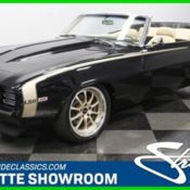 This 1968 Chevrolet Camaro RS LS6 Pro Touring convertible is all about taking one of the most aggressive '60s designs and adding ultra slick paint, modern trim, custom A/C interior, four-wheel disc brakes, six-speed stick, a fuel-injected LS6 V8 and so much more. So yes, this is the ultimate award-winning muscle machine that's ready to turn heads right now. Let's start with the exceptionally cool paint. It might look like a glossy black when there's no light on it, but when you take this out into the sunshine, you see the deep richness of a thoughtful application. That's because there's a champagne metallic embedded element that coordinates with the classic hockey stick stripe and custom Forgeline wheels. It's the kind of subtle coordination that's reserved for only the best builds. Even the folding roof matches this theme for an almost two-tone look when in place! But more than just color-coordination the high-gloss finish also showcases the precision panel fit as the '69 Camaro's iconic lines flow nearly seamlessly. The first-gen cars had some of the most aggressive styling straight from the factory, and this carries all the best elements with the RS hidden headlights, deep chin spoiler, cowl hood, and full-width spoiler. Plus, this one has its intimidation turned way up with custom details like the custom blacked-out grille, color-matched front bumper, and custom taillight package. The result is a one-of-a-kind look that's also unmistakable connected to one of the most iconic Chevys ever. The interior is just as nicely upgraded as the exterior. It starts with Corbeau seats finished in leather with black Ultrasuede inserts. Not only is this all-day comfortable, but also this two-tone presentation sets the theme for the whole interior. So with the dash, carpeting, trunk, and full custom door panels following this uniform look, the car can truly rival brand new exotics. In fact, this also gives you all the best in modern features, including a push-button start, power locks, power steering, tilt wheel, and an AM/FM/CD/XM stereo that features a touchscreen head unit to control the Bluetooth, sat nav, and full subwoofer speaker system. But your favorite features will likely be the power convertible top and power windows. After all, that means you can create a wind-in-your-hair experience without ever leaving the driver's seat. Feel free to do it all summer long, because the R134a air conditioning is blowing nice and cold. But more than just luxury, this is a true driver's machine. You have a grippy Billet Specialties steering wheel, and beyond that is a full set of AutoMeter Ultra-Lite II gauges. Have you noticed that the shifter has 50% more gears than you'd ever expected in a '69 Camaro? The heart of this beast is an upgraded fuel-injected 5.7-liter LS6 V8. You'll love popping the hood at all the car shows and watching everyone marvel at the modern V8 set in a world of gloss and shine. But this wasn't just about dropping a Z06 Corvette motor into a classic drop top. Instead, you're looking at nearly $10k invested in the motor alone. It includes Mahle Forged pistons, forged connecting rods, full hydraulic roller set, and a TK Stage 1 fuel system. There's a ton more upgrades and not enough space to list, so call for all the details. Just know that this enhanced and fortified V8 now is rated at 450 horsepower. Everyone can hear this power superiority thanks to Hooker headers feeding Magnaflow 2.5-inch X-pipe exhaust. But besides just having a wicked growl, it can keep cool while running hard thanks to a large aluminum radiator and electric fan. This V8 screamer needs stout parts to get all the power to the ground. This why you have the complete control of a six-speed manual transmission, and that feeds a strong Moser rear end. Making sure all this power has the best control is the fully upgraded suspension with Fatman front subframe, Prodigy Bar four-link rear, adjustable coilovers, and Wilwood four-wheel disc brakes. And the reason why these components look so fresh in the undercarriage pictures is because there's less than 5,300 miles on the whole build! There was a lot of time, inspiration, and money invested into making this Camaro so lustworthy. It's a convertible is a true celebrity on its own (just ask about the awards its already won and its magazine features.) So that means you have a fleeting chance at the best of everything. Call now!