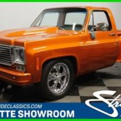 Pickup trucks are no longer just about utility. Some have been invested in to turn heads, and this restored 1977 Chevrolet C10 Custom Deluxe sure proves it. With the crisp orange paint, aggressive custom touches, comfortable interior, and low miles, you can't help but be impressed. The Atomic Orange caught your attention and won't let go...that's how it is for everyone else, too. This fresh application of the high-gloss paintwork was very well thought out. That's why much of the trim was removed from this pickup. After all, nothing can beat the shine that comes from investing in the right professional paintwork. But more than just the orange, this pickup has some real attitude. The stepside bed has that great flared fender appearance that helped start the vintage custom truck movement, and there's a good amount of time invested in making the whole C10 look this good. You can see it up front with the bright grille and high intensity headlights that mach the silver and gray appearance. Add to that the painted bumper and tall cowl hood, and that's a bold first impression. The sides have a lowered profile and bright 20-inch custom alloy wheels. Plus, there's no mistaking the look of that custom bed, complete with tough lining and new lumber redone in furniture-grade finish. It all ends with a custom tailgate and a rolled rear pan to give a fully unique appearance. Inside you get a bench seat that's covered in a comfortable cloth. This coordinates nicely with the black carpeting, doors dash, and custom three-spoke steering wheel. The bright exterior orange continues as an accent color on the doors and dash to add some color to this sinister-like deep dark interior. Plus, this interior/exterior color link adds a great uniform touch that the best vintage trucks have. Under the hood is Chevy's trusty 350 cubic-inch small block V8. The new components, panted block, and tidy belts & hoses all tell you this has received the right care and maintenance. Of course this is also the best motor to have for utilizing the vast and inexpensive upgrades available to best of the small blocks. But right now you're already producing the kind of power that makes this pickup a fine choice for work or play. In fact, with features like the TH350 three-speed automatic transmission, power steering, front disc brakes, and the modern grip of Cooper Discovery tires, this custom C10 is already turnkey ready to be a great anytime pickup. There's been a lot invested here to make this truck go well beyond '70s cool. It's an attention-grabbing vintage Chevy with only 75,130 miles. So this is one restored pickup that will draw them in and have a story to tell, too. Call today!!