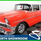 For the vast majority of classic car enthusiasts, there are few more pleasant sights than that of a mid-'50s Chevy. Their stout bodies and roomy interiors are endlessly appealing and the array of styling cues they exhibit are truly museum-worthy. This 1956 Chevrolet 210 is a fine representative of its manufacturer's wizardry of that era and offers the very enticing added benefit of substantial stroked power lurking just under its hood. With its timeless looks and strong running condition, it's road-ready in its present state and with some well-placed attention it could truly be transformed into a show-stopper. Just one quick look at this vintage Chevy and you'll want to hop behind the wheel and get out on the road. Its two-tone red and white paint scheme is a perennial favorite with the model and when this '56 ventures out into the sunlight, the subtle metallic flakes just below the surface give it some nice added detail. For the better part of the last two decades, it hasn't seen the inside of a paint booth, so while everything in sight is perfectly presentable, a freshening of the paint job and some minor adjustments will take things to an entirely new level. While the front and back bumpers are in top form, factor in some attention to the front grille, hood emblem and tail light casings and you'll equip this iconic car to make its presence felt on the local car show circuit. Climb inside and you'll be surrounded by a very sharp interior. The two-toned red and white bench seats in both front and back tie in nicely with the exterior color pattern and are in great condition -there's plenty of padding underneath cloth surfaces that haven't likely borne the weight of many passengers, judging from their fresh, uncreased look. Between them is a contrasting black center console that offers a couple of convenient cupholders, as well as a perfect place to rest an elbow while on the road. Take your position in the driver's seat and a Moon steering wheel featuring flaked red paint is within easy reach and if you peer through it, you'll see a generously sized Moon tachometer mounted on its column and an assortment of very fresh-looking Dolphin gauges recessed into the diamond shaped cluster panel in the dash. The trunk area in back is downright expansive, offering generous luggage space for weekend getaways even with the vertically mounted full-size spare and relocated battery inside. Like your classics with plenty of go power? This Chevy has you covered. The 383 stroked V8 under the hood is a strong performer to begin with, and it's carrying some top-tier performance components to take its power game even further. There's an Edelbrock intake and 4-barrel carb sitting just underneath its open element air cleaner, and an MSD ignition has been added to maximize spark, bringing this powerplant's output to a full 420 horsepower that combines with enough torque to push you back in the seat when you step into the throttle. It teams with a solid shifting TH350 3-speed automatic transmission and sounds great as it sings into a pair of shorty headers leading into its dual exhaust. A nicely sized aluminum radiator with an accompanying electric fan stands by up front to keep temperatures within optimum range as this 210 cruises on its set of 15" Cragar wheels wrapped with Cooper Cobra tires that place asphalt-grabbing 275s in back. Whether you opt to log plenty of fun-filled miles in its current solid state or put in some work to further expand its possibilities, this 1956 Chevrolet 210 has an awful lot to offer. Call today!