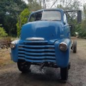 1950 Chevrolet 3600 cab over. DeLuxe cab. Complete, not running. Clear title in my name on non-op. I have had this truck for 15-20 years, & dont see myself getting to it any time soon. Grille & sheetmetal are nice, not all dented up. It rolls, but tires are shot. I can help load. Some rust in lower rear cab corners & in the bottom of the dash. Floors are pretty solid. The junk on the back of the truck is not included ! Look at pics & ask questions please. Phone 510 912 5138 for more info.Looks like the original motor, I have never tried to turn it over. 2 speed rear end.