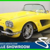 You're looking at a car that has no equal. This 1962 Chevrolet Corvette is the kind of restomod that takes the ionic style and adds everything you could want. So while you're enjoying the performance of a modern LS1 V8 with a fully independent suspension, and the comfort of leather-clad A/C interior, you'll also be winning awards in a unique build that has been customized over every inch. This car doesn't try for a moment to hide its uniqueness. The bright, bold Millennium Yellow is not only out of a more modern color pallet, but also Corvette people will respect it instantly for how rare it is even when they offered it on the C5. This final-year first-generation Corvette was the right place for this speedy color. It retains the iconic design lines that made the Corvette America's sports car, but the car evolved with a less fussy front end and the duck tail rear that really made these look like they were ready to take on all the other cars out there. And like any good '60s machine there was plenty of brightwork. Everything from the intricate form-fitting split bumpers, to the delicate trim that runs the full-length of the front fender â€" it all has the mirror-like quality of serious investment. But there are also terrific modern details, too, that make this a true standout. It includes the Z06-style chrome wheels, HID headlights, custom taillights, cowl hood with LS1 proudly displayed, and the black folding roof that looks great against the black cowl insert to ensure that this custom 'Vette looks great even with the top up. A car this cool on the outside is going to wow you on the interior, too. Those Cadillac cream leather seats fit so perfectly between the C1's iconic waterfall tonneau, but we guarantee the modern buckets will hold you better than anything out of the '60s ever could. And we know you love how nicely the colors are coordinated inside. Not only is the same cream used for the doors, dash, shift boot, and even carpet piping, but also the burnt orange insert on the seat is repeated on the doors and steering wheel. It creates a striking and uniform package that lets you know this custom 'Vette could win awards on the interior alone. And more than just look fantastic, there are plenty of great comfort features like the full Auto Meter gauge package, an AM/FM/CD stereo, and provisions for power windows. Best of all, there's ice-cold modern R134a air conditioning, so you can stay cool while looking cool driving with the top down any time of year. Everywhere you park, you won't be able to resist lifting the hood and showing off this exceptional engine bay. Just like the rest of this custom build, you're looking at a heavy investment in creating a fully-coordinated package. Everything under the hood is yellow, black, or chrome â€" and it stays true to this uniform presence right down to the performance air filter. And more than just the color presentation, the way the firewall is so smooth and the entire appearance is clutter-free, tells you this was a meticulous labor of love. Besides just looking great, you're going to love driving this one. That's because the LS1 callouts were not lying. And you have complete control over this 5.7-liter fuel-injected power plant because GM's six-speed manual transmission was added, too. Out on the road, this handles like no C1 that you know. The SR111 Motorsports tubular chassis adds a level of stiffness these Corvette never had. Plus the fully independent suspension and four-wheel disc brakes take this first generation car and bring it in line with some of the most modern Corvettes out there. And you might want to take some real time to look over all of this in the undercarriage photos, because there was a TON of $$$$$ getting this performance suspension polished and ready for primetime. There is a different caliber of custom car, and it's the kind you can put a mirror under at any show. This is obviously that kind of upper-echelon machine. In fact, it already has gotten attention from national magazines, TV shows, and major awards. You even get a photo file documenting how something this detail-oriented was built so right. It usually takes a lifetime to get a car looking like this, but if you're lucky enough, the ultimate corvette could be yours tomorrow. Call today!!!