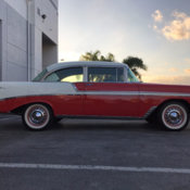 This is a fully restored 1956 Chevrolet Handyman Wagon.The red paint is in excellent condition and was painted around 5 years ago.The flames are vinyl and can be easily removed, if desired.The chrome is in excellent condition.This vehicle drives superbly.Engine is a 383ci V8 with dual quads and cold-air intakes.Transmission is a 700R4 automatic 4 speed with column shift.The suspension is all-new.Rally wheels on all... 4 corners.Vehicle has power steering, power brakes (front disc, rear drums).This vehicle is a multi award winner, winning around 30 trophies at local car shows.Interior is custom tan with leather and nice carpets and is approximately 5 years old.Steering tilt column is Ididit.Heater and air conditioner are working.Power windows.This is a very nice driving, show winning vehicle. It is ready to win at your next local car show.Viewings are by appointment only. 844-652-8767WE FINANCE, SHIP, DELIVER WORLDWIDE.