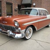 1956 Chevrolet 210 WagonClean Arizona car, beautiful Brandy Wine paint, black Del Ray vinyl interior, 350 ci crate engine, Edelbrock 4 bbl, Edelbrock polished aluminum intake, ceramic headers, chrome air cleaner & valve covers, power steering, power front disc brakes, Vintage air conditioning, polished aluminum radiator with electric fan, 700R4 automatic overdrive transmission, bench seat, tilt column with billet steering wheel, Classic Instruments gauge cluster, Pioneer am-fm radio, Flowmaster dual exhaust, factory rear end with sway bar, 235/55R17 rear tires, 215/50R17 fronts, 17” American Racing Torque Thrust wheels (10” wide rears), 4 corner air ride suspension, Ready to Cruise!