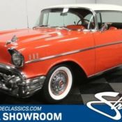 Make no mistake, we're big fans of customized rides here, but sometimes it's nice to see a classic arrive in restored but unaltered shape, as if it's been transported into the present with its original configuration still intact and yet is in full possession of its vintage road readiness. Such is the case with this 1956 Chevrolet Bel Air 4 Door Sedan. Looking sharp, running strong and wearing its original colors both inside and out, this Chevy is a very... solid driver that ably and authentically represents one of the most beloved classic models ever to roll off an assembly line. The expansive four door layout and those fender skirts partially concealing the rear tires on this '56 give it such a stout and expansive appearance. With just a quick glance you can easily picture it faithfully transporting its family down the highway in a much simpler era. Its two-tone orange and white color scheme - energized by an accurate refreshing of the original paint a while back - presents really well, with a consistent shine and smooth texture. Circle this classic and you won't find any visible dents or chips in sight - it's obviously been very carefully looked after. Every defining exterior feature appears to be in great shape, including the intricate front grille that sits underneath a vibrant looking Chevy emblem, with the signature rocket ornament on the hood above pointing the way forward. The cabin is surrounded by clear glass and the brightwork throughout seems very solid. Climb inside and you'll be in the midst of a top notch, well-restored vintage driving environment. The bench seating in front and back wears its original orange and tan colors on its vinyl covers that, judging from their fresh, unwrinkled appearance, have been only lightly used as they loom over the matching carpeting below, and a set of modern style lap belts have been added to provide a measure of safety during everyday driving. The factory-style steering wheel still has its showroom appearance and sits in front of a very sharp dash area, with its fan shaped instrument cluster protected by a still-clear lens and a chrome accent spanning the substantial width of the cabin, passing over an added AM/FM/Cassette stereo branded with its Chevy bowtie. The cavernous trunk area is solid, with rubber matting lining its floor and a full-size spare standing by in its proper upright position. The 265 cubic inch V8 sits in a neat and well-detailed engine compartment and wears an array of period correct components from its era, including the 2- barrel carb inside its compact, black air cleaner. It's a sharp looking powerplant, with its block, intake and Chevrolet-branded valve covers painted orange to match both the firewall and the exterior - and its contrast to the black inner fenders is a striking one. The engine fires up promptly and serves as the foundation of a solid drivetrain - this classic Chevy is very much ready to roll just as soon as you get it home - teaming with an also period-correct 2-speed automatic transmission that shifts very smoothly. A set of ultra-clean 15" factory wheels wrapped in 6.70-15 whitewall tires finish off the look of this car in just the right style. Below, the undercarriage appears to be in flat out great shape, with no signs of corrosion damage in sight. Faithfully recreating the magic of its era, this 1956 Chevrolet Bel Air 4 Door Sedan offers a strong level of road-readiness to go along with its vintage charm. Call today!