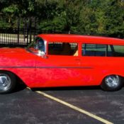 This is a fully restored 1956 Chevrolet Handyman Wagon.The red paint is in excellent condition and was painted around 5 years ago.The flames are vinyl and can be easily removed, if desired.The chrome is in excellent condition.This vehicle drives superbly.Engine is a 383ci V8 with dual quads and cold-air intakes.Transmission is a 700R4 automatic 4 speed with column shift.The suspension is all-new.Rally wheels on all... 4 corners.Vehicle has power steering, power brakes (front disc, rear drums).This vehicle is a multi award winner, winning around 30 trophies at local car shows.Interior is custom tan with leather and nice carpets and is approximately 5 years old.Steering tilt column is Ididit.Heater and air conditioner are working.Power windows.This is a very nice driving, show winning vehicle. It is ready to win at your next local car show.Viewings are by appointment only. 844-652-8767WE FINANCE, SHIP, DELIVER WORLDWIDE.