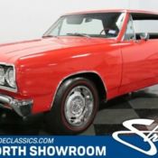 One of the great things about the muscle car era is that there's almost an infinite variety of cars, colors, options, and styles. Now, for purists, that can be a nightmare, but if you're looking for a clean big block Chevelle that drives well, looks great, and has a reasonable price, this 1969 Chevrolet Chevelle SS 396 tribute is a truly entertaining ride. There were about a half-dozen different engines, two dozen colors, and a wide variety... of interiors available in the Chevelle, ensuring that you could get one any way you wanted it. But the one thing that doesn't change is that the A-body makes for a ferocious street car when you stuff a big block under the hood. While we can't say this is a real SS since 1969 cars are very hard to identify without original documentation, it has been neatly restored to look right and they were sweating the detail. Wearing bright red livery, which gives it a bright disposition that we like a lot, it certainly has the right performance attitude. Bright colors always work well on these cars and with a black vinyl tape stripe slashing down the side, there's no question that there's serious horsepower on tap. Finish quality is quite good, with a nice shine on the paint and no real deviations from stock, including a factory hood and correct 'SS 396' emblems as needed. The chrome bumpers have a nice shine and the stainless wheel well moldings provide a nice contrast against the bright red paint. And that black vinyl top works beautifully to ensure that this pastel Chevelle isn't too soft-looking. Chevelle interiors are always well-dressed, and the fellows who restored this car did a fine job putting it together. Bucket seats are important features when you're driving a SS396, and with Hurst 4-speed shifter in the center, it definitely has a hi-performance vibe. The seat covers are in excellent condition, the carpets were replaced when the car was restored, and the door panels are nicely detailed with correct emblems. Round gauges were part of the SS package and this car includes a full complement, including a factory tach, along with some auxiliary gauges under the dash. The only possible demerit is that the aftermarket Sony AM/FM/ CD stereo isn't working, but we doubt you'll miss it. The trunk is tidy and clean with a reproduction mat and a full-sized spare, just in case. The powerplant is a burly 396 cubic inch V8 that still delivers the big hit of torque for which big block Chevys are famous. Dressed to look fairly stock, it has chrome valve covers, an open-element air cleaner with 396 decals to help the illusion, and Chevy Orange paint on the block. A big 4-barrel carburetor on top of an aluminum intake manifold, MSD ignition system, and long-tube headers with a recent Flowmaster dual exhaust system gives the big engine plenty of punch. The 4-speed manual transmission shrugs off the power churning through it and you'll never get tired of slamming the shifter through the gates with the engine at full song. The underside is reasonably tidy, with floors that show some patches that were done well, as well as a 10-bolt rear end, which appears to be original to the car. New shocks were installed and handsome Rally wheels look right and wear 235/60/15 front and 255/60/15 rear BFGoodrich T/A radials. Just a nice cruiser with a big block punch, this is an awesome opportunity to pick up a very clean Chevelle with no surprises and a reasonable price. Call today!