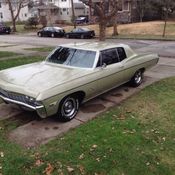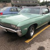1968 Impala Custom 46,000 miles . Air Conditioning (not working ),original all metal panels (no rust ) original paint (Grecian Green ),original chrom, moulding, weather stripping,original black vinyl top, original emblem, gril, bezel, door handle, wipers and (T3) head lights .Gauge, light, heater, defrost (climate control )are functionial . Wiper motor works .Original 327 engine with 4 barrel Quadrejet, (new oil &filter ) 700R4 transmission.Front disk brake, rear drum (hand brake works ).New addition Aluminum COOL radiato, fuel pum, water pum, Taylor HEI distributor (new plugs ) and wires . Dual exhaust (with original manifolds )Interior is original in pristine condition.AM radio (AM &FM /CD player )in glove compartment. Black interio, bench front and back seats.Trunk has original splatter paint and mat . New cougar cobra tires with centre caps and ring, P225 60 R15(rear) &P225 70R15 (front). A low mileage impala that was well kept by original owner . I have owned this car for 12 yrs . Photos taken Sept 1, 2019 in 4k resolution and wide screen . I have more photos of car . (ebay has limit of 24 for listing ) Questions ? email me and I respond promptly .Good Luck bidding ! Kevin .