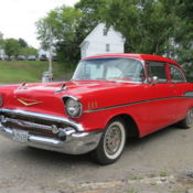 I have owned this car for about 35 years. I have beenslowly building it over the last couple of years. It contains only the very best of parts. The car runs and drives very well, starts instantly, idles nicely (850 rpm 16" hg) brakes are great, does not overheat, and everything works. And it's FAST. The entire interior is covered with hush mat under the new upholstery and carpet so it cruises along nicely although it is fairly loud outside. The paint is ok but not perfect, some chips and sags (about a ten footer) the windshield has 2 stone chips. A great driver. The body, frame, and interior are stock 57 chevy. Chassis mods include, tubular frontsuspension, 11.4" disc brakes, dual power brake mastercylinder, CCP 500steering box (14 to 1 ratio), mds 15" steering wheel, Helwig front stabilizer bar, Helwig rear stabilizer bar ( included-installed but removed due to rough ride) new 9" Ford rear 3.50 ratio with traction lock and 11" disc brakes, Caltrans traction bars,17x7 front and 17x8 rear American Racing wheels with Michelin pilot supersport tires. 215x17 front and 245x17 rear,driveshaft safety strap. The power train: Block 1974 C20 truck 4 bolt 350 chev. bore 4.040 stroke 3.75 (385 cu in) compression 10.4 to 1 Scatcomp crank, Scat forged rods, Probe forged pistons, all ARP bolts. AFR 180 "Eliminator" heads, Edelbrock airgap rpm intake and 650 cfm carb, Lunati "voodoo" hydraulic roller cam and roller lifters, comp cam roller rockers, Aluminumhighflow water pump, aluminumradiator, MSD 6A ignition anddist, corvette 2 1/2 inch rams hornexhaust manifolds, 2 1/2"exhaust, mufflers, and tailpipes, has complete "vintage air" heater and airconditioning, Muncie 4 spd transmission, Hurst comp plus shifter, new fuel tank and pump.The engine drives a fiberglas fanbehind the radiatorand anelectric pusher fan comes onanytime the air is on orthe temp goes above 170.My heath and age (81) prevents me from working on cars anymore so Iwill pass this wonderful car along tosomeone who will enjoy it. The car has a sun tach and a classicstereo radio. Included (in the trunk) is the spare tire (orirginal 1957) and jack, severalchevy special tools, an extra carb (holley 750cfm), an autoflex plate balanced to this engine, and some extra misc trim parts, ashop manual, all the receipts and the rear bar. The car has no dents and no rust (a picture of the driver floor rust panel replacement is included).I will accept cash or checks but checks must clear before delivery. The car is registered and insured. Deposit $500within 2 days (pay pal or check) Full pay in 7days