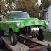 1954 chevy Gasser496 big blockeagle rotating assembly781heads that have been opened up with bigger stainless valves, roller rockers all the good stuff!10.5-1 compressioncomp cams muther thumper .555/.507 hydraulicpro systems 850 carb. jetted to this buildholley blue fuel pump along with regulatormsd digital 6al. motor has less than 100 miles on itcooling system has a high flow water pump with a custom aluminum radiator and derale eletric fanthe car does NOT get past 190 even cruising in the hot florida summer heat and humiditytransmission is a rebuilt super t-10 4 speed with a mcleod dual disc hydraulic clutch [if you know what this is then you know the cost of it$$]willwood slave and brake master cyl reservoir