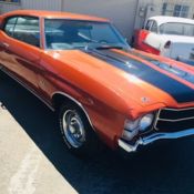 71 Chevelle SS Tribute. This Is a California classic muscle vintage car with no rust has Rebuilt 350cid with added headers, 4 barrel CFM carb, Edelbrock valve covers and air filter along with newer hoses/alternator and battery, No overheating issues. Turbo 350 automatic transmission with shift kit / 12 bolt rear end, with 353 gear ratio, so its set up for long touring, just purchased new Torque thrust chrome wheels with New radial TA tires all around, Or you can have your choice for the Rally wheels. This Chevelle has a straight body all metal all around, the chrome and all trim in great condition. The New paint is by House of kolors called Mango Tango(very expensive) also with black SS Stripes have been painted with clear coat added over for a clear smooth finish, This Chevelle also has Power Disc Brakes, Dual exhaust with Flow Master mufflers (sounds amazing), Raised steel hood, Nice black interior with black bucket seats and center console with floor staple shifter. New dash pad being installed, cluster panel with clock, nice headliner and door panels along with carpet, New Tilt Steering Column, with added wooden GT steering wheel, recently added the gauge package instruments above the center console. New Master Cylinder, Thermostat, Ball Joints, Tie Rod Ends and Alignment. Trunk and floor pans along with the rockers are in great condition as well. This Chevelle needs nothing other than a new owner to enjoy. Ready for car shows and cruise nights, Very reliable muscle car that is all show and all go! Financing is available, 15 minute approval. This is a private sale Delivery anywhere in the country, call or text me today 847-848-1840