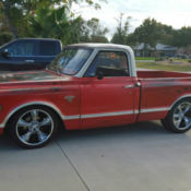 1968 Chevrolet C10, 2wd, original short bed, 327 V8, automatic, power steering, newer paint(original color), new dual exhaust(has a great tone) and carburetor, new bench seat under the cover. runs very good. Body is straight and all the glass are good. There's one little spot of rust on the corner of the passenger floor panel. Newer tires. Radio doesn't seem to work and it's leaking some transmission fluid(i'll have that checked out). It's a good running truck that looks good, need some finishing touches. Thanks for looking. Clean wyoming title. Price to sell
