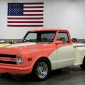GR Auto Gallery is pleased to present this head turning 1969 Chevrolet C10. This highly prized show truck comes in a stunning two tone orange and white paint job complemented by a clean tan interior. Powering this exceptional vehicle is a strong 350 cubic inch V8 motor mated to a stout TH350 automatic transmission. Upgrades to the truck include a shift kit, lowered suspension, aftermarket exhaust and more. Features of the C10 include power steering, power front disc brakes, an aftermarket stereo system, power windows, working heat, A/C and much much more. A frame off restoration to include the powertrain is believed to have been completed based on its condition. This immaculate C10 comes to us from a private collection and as such has always been properly maintained and stored. So, if you're in the market for a show ready truck sure to take the spotlight, this is the Chevy for you. Please call or email us today for more information.The C/K was Chevrolet and GMC's full -size pickup truck line from 1960 until 2000 in the United States, from 1965 to 1999 in Canada, from 1964 to 2001 in Brazil, and from 1975 to 1982 in Chile. The first Chevrolet pickup truck was introduced in 1924, though in-house designs did not appear until 1930. "C" indicated two-wheel drive and "K" indicated four-wheel drive. The aging C/K light-duty pickup truck was replaced with the Chevrolet Silverado and GMC Sierra names in 1999 in the United States and Canada, and 2001 in Brazil; the Chevrolet Silverado HD and GMC Sierra HD heavy-duty pickup trucks followed. Until this time, the names Silverado and Sierra were used to identify the trim level of the C/K trucks.
