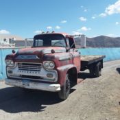 1959 Chevy C60 Viking Dump Truck. Actual miles unknown. 1970 Chevy 350 motor in it, according to number on block. Transmission is a 5 speed, including the granny gear. Paint is poor, there is some Bondo & some body rust. Runs & drives BUT IS NOT ROADWORTHY! No tail lights work, brakes take 2-3 pumps to engage. Tires have good tread, but are getting old. Previous owner spent a fair amount having wheels made - had split rims on it. Bed goes up and down via a PTO. There's tire chains in tool box. Originally truck had snowplow & sander on it, hence the shallow bed. Last owner used it to cart snow away. Glass is pretty good - mild wiper scratch on windsheild, pass side vent window has horizontal crack through, driver vent window showing signs of delaminating around edges. Looks like everything seeps a little bit. Radiator looks pretty green, not tight to its mounting tabs. Guy who last drove it on highway said motor/trans worked well. I see this as a Project Truck, as opposed to a Fix It & Run IT truck. I can text additional pics if you contact me. Please ask questions BEFORE you bid. Certified Check or Cash for Title. Clean title in my name. Truck is in Jackson, Wy. I've only driven 4 miles in town.