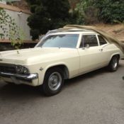 BIDDING ON A RUST FREE (FACTORY Z-BART) UNDERCARRIAGE COATED 1965 BISCAYNE IMPALA. FLOOR PANS AND TRUNK PANS ARE SOLID. NO BODY RUST WHATSOEVER. .BRING A MAGNET AND TEST IT YOURSELF. .CAR SPENT IT'S LIFE IN ALABAMA.. LESS THAN 1,000 MILES ON THE DRIVE TRAIN. .383 STROKER, NEW MUNCIE 4 SPEED, FLOWMASTERS AND NEW EXHAUST.. NEW TIRES ON RALLY'S.. WHEELS COULD USE A CAN OF SILVER PAINT TO TOUCH UP.. FRONT AND REAR SEATS ARE IN VERY GOOD SHAPE.. NEEDS NEW CARPET, DOOR PANELS, AND A HEADLINER.. EVERYTHING ELSE IS DONE.. SELLING DUE TO ILLNESS...I HAVE A LOT OF TIME AND MONEY IN THIS CAR BUT CAN'T COMPLETE THE PROJECT.. MY LOSS IS YOUR GAIN.. AUCTION HAS A LOW RESERVE AND IS BEING SOLD LOCALLY AS WELL...AUCTION COULD END WITHOUT ANY WARNING...NO WARRANTIES IMPLIED...I ACCEPT CASH, CERTIFIED BANK CHECKS, AND PERSONAL CHECKS ONCE THEY CLEAR MY BANK.. THERE IS NOT ANOTHER RUST FREE BISCAYNE ON THE WEB AS INEXPENSIVE AS THIS COULD SELL FOR... MAY CONSIDER POSSIBLE TRADES..(NO BOATS OR MOTORCYCLES UNLESS THEY ARE Z50 HONDA MINITRAILS) I'D LIKE ONE FOR MY GRANDSON ! TEXT ALL QUESTIONS TO 843-685-9898 FOR FASTER RESPONSES...BEST OF LUCK BIDDING ON THE ROCK SOLID BISCAYNE...I WILL HELP YOUR SHIPPER IN LOADING THIS VEHICLE...( I posted the pictures of when it was white to show how good the body was. look at the patina on the trunk lid.) solid car !!!