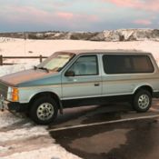 84 Plymouth Voyager has original Japanese Mitsubishi 2.6L 4 cylinders motor, carbureted with automatic transmission, FWD, light blue leather seats.