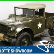 No matter if you have a large trek to hunting camp or just need the coolest parade vehicle, this 1952 Dodge M-37 Power Wagon is exactly the 4x4 you've been looking for. One look at the camo green exterior with full army star livery, and you know this vehicle is ready to conquer just about anything. So we know your imagination is dreaming about the places you can go and the projects you can tackle. Owning a military-grade machine like this is about reaching beyond any limit you could ever imagine, and having the space to haul all your gear, too. While this looks terrifically authentic, don't forget about the versatility in features like the strong rope up front, two hooks, brush guard, and gas can mounted on the fender. Plus, the full shovel/ax/toolkit mounted on the tailgate is equal pars functional and cool. We could tell you this is a roadster for sunny day fun, but you already you know better. The interior is rugged, versatile, and provides you with pure function. You control this truck with the same steel wheel and shifter that was forged to last generations. This is a tough-as-nails machine that is built to be reliable, and that's exactly what you desire. And even though the interior was built to withstand a monsoon, you still have a folding canvas roof for when you want it. Under the hood is more of that military-grade toughness. The 230ci inline-six motor has been in production for decades, and in fact, it dates back to the time when these Dodges helped win WWII. It provides genuine stump-pulling power so this could be a true workhorse on your land, or the four-speed manual and two-speed transfer case might just make for the ultimate recreational vehicle. In fact, this has been given the right upgrades like newer locking hubs and an electric fuel pump so this military-grade machine can still provide proper service. A Power Wagon like this is so cool and versatile. And when it's this affordable, most of us just want to take it home and then figure out all the new projects and activities that this capable classic can tackle. So don't miss you opportunity, call today!