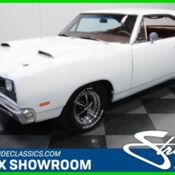 Big block Dodges are always in-demand. That's why this 1969 Dodge Coronet 500 built to be a mean R/T tribute is so alluring. With its big 440 V8, distinctive red interior, and street-eating presence, it's what Mopar muscle is all about. The Chrysler B-bodies of this era seemed to follow a variation on Theodore Roosevelt's adage of, "Speak softly but carry a big stick." You see it immediately in the way the subtle white paint hides the body's wide and dominating presence. But it doesn't use big ornamentation to show its aggression. Instead, it carries a simple wide chrome bumper that looks like the huge grin of a man who knows he can beat up every last person in the joint, but he'd rather just enjoy his beverage... for now. But a car this cool can't hide all of its street-eating nature. That's why you have the dual hood scoops, hood pins, rear stripe package, and an R/T badge in a shade of red that looks ready to draw blood. And no muscle car appearance is complete without iconic Mag wheels. That hint of aggressive red in the R/T badge is also a preview of the interior. There have been nice investments to keep this one feeling crisp and comfortable, and there's also an extra hint of uniqueness. This one has a very cool atmosphere that reminds of a coupe that would have been upgraded back in the day. For example, you get the premium Coronet 500 pieces like the low-back bucket seats and wood-like appearance on the dash and door panels. Plus, there are cool old-school touches like the AM radio and separate 8-track that are still on display. But the upgrades like the B&M shifter, wood-rimmed three-spoke sports steering wheel, auxiliary gauges, and large tach mounted next to the original instruments are all the kinds of upgrades that feel like the Dodge visited the hot rod shop. Open the hood, and the bright orange V8 radiates from the clean white engine bay. And while this looks quite factory-like, you'll also notice nice upgrades like the Mickey Thompson valve covers and an electric fan on the radiator. The 440 Magnum V8 is one of the best powerhouses of its day, and this is further enhanced by an Edelbrock four-barrel carburetor and long-tube headers. Combine that last feature with the H-pipe dual exhaust, and you've got an unmistakably mean sounding machine from the moment the big V8 fires up. But more than just providing some of the best muscle car power for the streets, the Magnum was known to be one of the easiest to live with, too. This is backed up by great driving features such as the Torqueflite three-speed automatic transmission, power steering, and front disc brakes. This Coronet is powerful, distinct, and all-out mean. It's the Mopar muscle package you've been waiting for, so don't let it slip away. Call today!!!