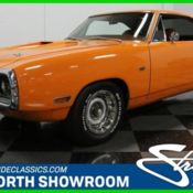 This is the kind of classic muscle machine you love for all occasions. With its distinct well-coordinated paint package, original 383 V8, and overall Mopar rarity, this 1970 Dodge Super Bee is exactly what we're all searching for. So read on for all the details, but you already know there's no sweeter deal going. The Dodge High Impact colors were one of the coolest offerings around. And since they were available for a few short years, we're all on the lookout for original bold Mopars. So when someone asks you if this is an original Top Banana car, you can proudly say "Yes!" This extra confidence also comes from a terrific respray that really radiates the sunlight. The styling for 1970 was pretty unique for this one model year. The super-hot Super Bee packaged muscle cars had a seriously mean appearance with the wide dual grilles that truly looked a bit like bumble bee wings. Straight bodywork is especially critical on Mopar's iconic block B-body cars, because while these were the midsize offering, the stylists knew how to give them the look of unflinching full-size authority. More of this car's intimidation comes from the hood scoops, unique badges, and black double hockey sticks on the side that give this bee its stripes. The black stripes also are a nice introduction to the full black interior. It makes for a terrific coordinating package inside & out that you'll love showing off. With a great presentation and plenty of back seat room, you'll have plenty of family and friends wanting to go for a ride. But even when it's just you, this Super Bee is a hive full of action. You'll love the factory pieces like the three-spoke sports steering wheel and wood paneling surrounding the round gauge package. And the tach/clock is truly an iconic piece. In fact, this looks highly original, right down to the solid state AM/FM radio that's still on display! But the best piece of originality is under the hood - it's the numbers-matching big block. This was only 1 of 5,737 originally built with the powerful 383 cubic-inch V8, and so it's true distinction to still have that under the hood today. And this original motor is absolutely ready to show off thanks to the bright orange on the block, valve covers, and factory air topper. All of this is surrounded by the even bolder Top Banana paint in this tidy engine bay. More than just great history, this presentation shows that this has received the right service and care over the years. Plus, it has even been given the right upgrades like an Edelbrock four-barrel carburetor and large aluminum radiator. It fires up with the great Mopar muscle growl. Plus, it's ready to take on the streets with great driving features like power steering, front disc brakes, and the grip of modern performance tires on the polished Ridler wheels. And best of all the numbers-matching Torqueflite A727 three-speed automatic transmission is present to round out this coupe's originality and drivability. Correct High Impact yellow, distinctive styling, and the original big block make this a rare and desirable Bee. So the only way you're going to feel stung is if you miss out on this classic. Call today!!!