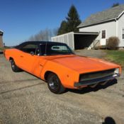 69 Charger RT Tribute. fresh Alabama barn find. Running date code correct 440. AT with new gas tank and newer carb. Was a 383. AT. 8. 75 A/C car. 99% complete car. little rust in quarters. and around rear window. Needs trunk pan. Rear floor pan is little soft. Other than that solid straight car. Rocker moulding. hood turn signals. wood grain dash options. Interior original and good condition. Driver seat has tear in vinyl. Dash pad is uncracked. The grill is absolutely excellent condition. Bumpers are faded. With little work. this could be a driver. This is a great find. I am having second thoughts listing it. but life says otherwise. Currently have notericed Alabama bill of sale. should have speed title by end of auction. I have a couple guys that may help with transport at cost. I also have other muscle cars and Mopar parts available. I can also provide some of the metal work professionally installed at cost. Serious inquiries only 765-760-1670