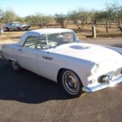 Features: Both tops-both hardtop with no portholes as correct for 1955 and convertible. Rare front clear parking lights in front bumper bumperettes-about 6000 mfg that way in Dearborn. Skirts, ull wheel covers, ew tires, ebuilt transmission and rear end (seals), onverted to 12V, xtra glass included, ew gas tank, ew windshield, ll emblems removed in mild customizing in 1950's included, ore parts like steering shaft - correct for 1955for 2 tooth sector (3 tooth was 1956 and after), xtra speakers in trunk, arpet and upholstery good, aint good, 50's style duals under rr bumper, tored in barn from day bought on 6-19-84 from 3rd owner. Now snowshoe white, riginal color was aqua green (which Ford called Thunderbird Blue which always looked blue-green to me), hen red, hen black. Duplicate of original owners manual. 40A BODY STYLE (both tops); T Thunderbird blue- Looks aqua to me); XC interior orig turquoise & white; 15-day of month; G - July; 392 - No. of car scheduledtilJuly. (Production always didn't match scheduling.) 16,166 1955 T Birds mfg in 1955 at Dearborn where all T Birds were mfgered.