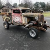 1941 Ford pick up, built '60's Gasser style671 blown 355 Chevy, 4 speed, 4:11 posi trac rearendCustom Silver Metalflake paint, white interior, metalflake inserts in seats.Gold Leaf lettering, not painted on.Chopped top, 4", Wheelbase shortened 7", Custom bed, rear fenders and fuel tank.See article in July 2015 StreetRodder magazine, "Street Shaker" for more information.Never raced, this is a street truck. Has been on track for pictures and burnouts.Front wheels have been changed to "Gasser" style spokes.Graphics are NOT painted on and can be removed to personalize to your taste.Very Fun truck.