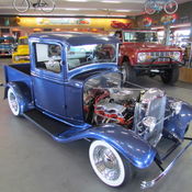 All Steel '32 Ford Truck....New Model A Short Bed...all fenders, hood, bed, Pete & Jake Chassis, Exhaus, Steel '32 Gas Tank, Running Boards and Walker Radiator are Brand New.....New Headlight Bar...Has Smaller Chrome Headlights not shown in pictures.....Vintage Ac is New, All New Ultra Leather interior, All New Glass, '32 Bumpers Front/Rear....New Power Disc front/Drum Rear Brakes...motor is used..350/Turbo 400/9" rearend........This Truck was never completely finished....needs elec. windows wired, ac charged...headlights, taillights wiring hooked up.....Color Sanding is started but not Buffed completely.......I drove it down the road about 2 miles this morning...that's all the miles on it........All this truck needs is some weekend finish work and to make really nice, I'd take the GM Tilt Column out and put an IDIDIT Column in.....I've already got a Truck and bought this to resale or do some trading......I really want a '32 Sedan......No Junk because this is not Junk.........Throw me some trade Offers......never know....$28,000 or Best Cash Offer....Tanner 251-649-5397