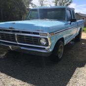 1974 f 100 super cab short bed. 100 percent rust free desert truck. This is a great start for whatever direction someone wanted to go... Has a 351 m runs good and has a 4 speed. Has dual exhaust with flowmasters. Cab is great was originally baby blue (which is what I was going to go back too) front clip off a 79 ford. The short beds of these super cabs were a goofy 7 feet. I took 8 inches out and trimed the last 3 inches off the frame. (needs a roll pan) needs a little bit more body work. I have a grille but its not perfect. As it sits right now its ready for body work and paint which is where I left off. Now for the interior I spent 1400.00 alone on getting the seats re upholstered new carpet dash cover door panels and all the necessary rubber. The reserve price is what the truck will go for with a blue bench seat . The second it hits 2500.00 I will include all new interior parts. Please call or text me if you have any questions 760-608-9960 This truck does run drive steer and stop but it is a project so it needs work. (remember the reserve only buys the truck The new interior will not be included until 2500.00) The inerior in it is not horrible and the blue bench is useable. title is in my name and no back fees are due at dmv. I will deliver it within a reasonable distance 600 miles or so over a weekend. I charge only the fuel from 93527 I get 12 mpg towing. reasonable.....