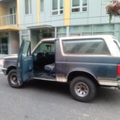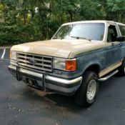 Up for Sale is a 1987 Full Size Ford Bronco XLT. It has 166,000 miles. My father has owned it for the last 17 years changing the oil every 2000 miles. He used it for the mountains and desert as he loves to be outdoors. Its never been abused off road. Its doubtful that the vehicle has ever been over 60 mph. It comes with a carbuerated 351 V8 and is very strong. I will list the pros and cons below. It may not win any beauty contest but for 30 years old it still has a lot of potential.PROS:351 V8, Straight body, no dents, runs strong, great 4x4, top has never been removed, brand new set off tire chains, clear title,all electric doors and windows work, 70% tire life left,
